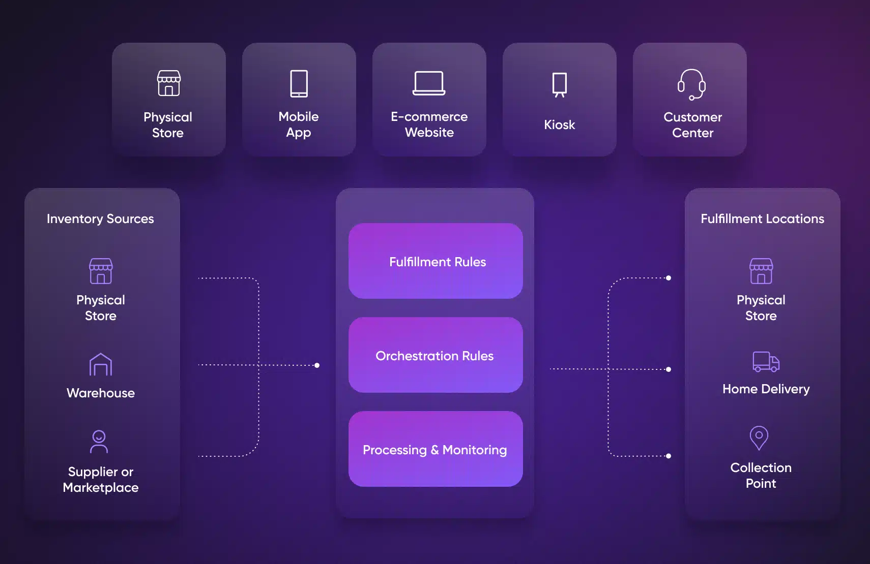 Capability to fulfill orders from various sources (online, brick-and-mortar, mobile apps) using the most efficient method.